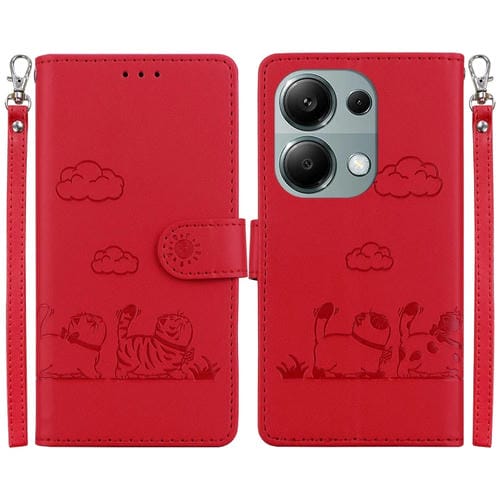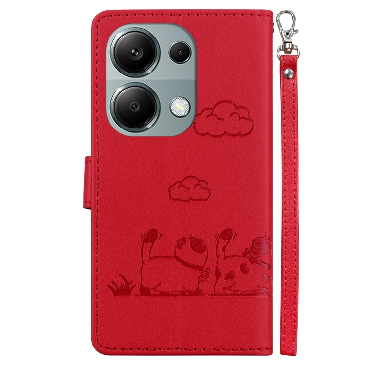 Funda de Cuero Rfid con Diseño de Gatos para Xiaomi Poco M6 Pro 4G (Roja)