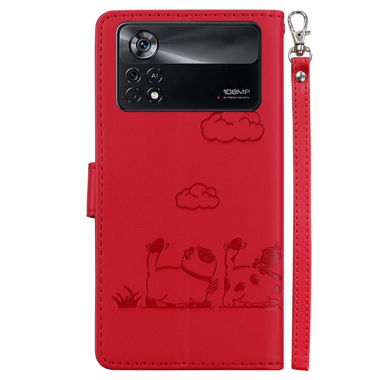 Funda de Cuero Rfid con Diseño de Gatos para Xiaomi Poco X4 Pro 5G (Roja)
