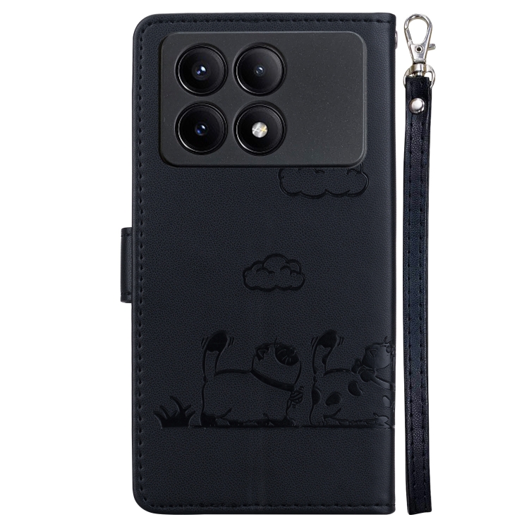 Funda de Cuero Rfid con Diseño de Gatos para Xiaomi Poco X6 Pro (Negra)