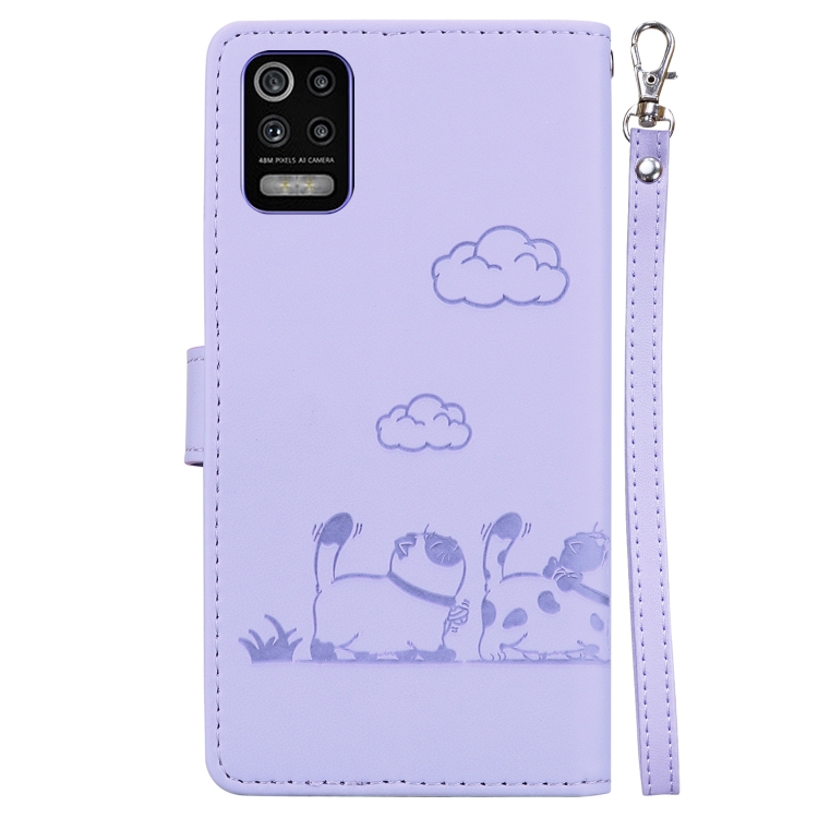 Funda de Cuero Rfid para LG K52/K62/Q52 con Diseño de Gatos (Morado)
