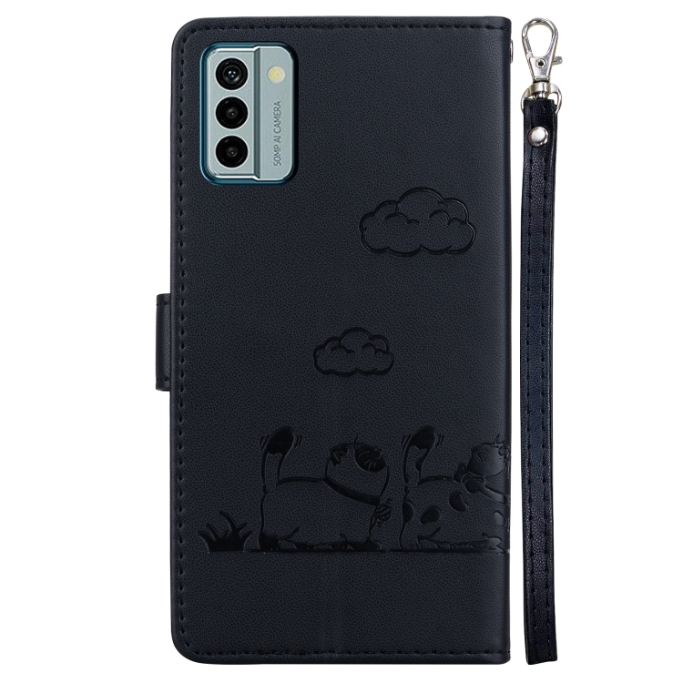 Funda de Cuero Rfid para Nokia G22 con Diseño de Gatos (Negra)