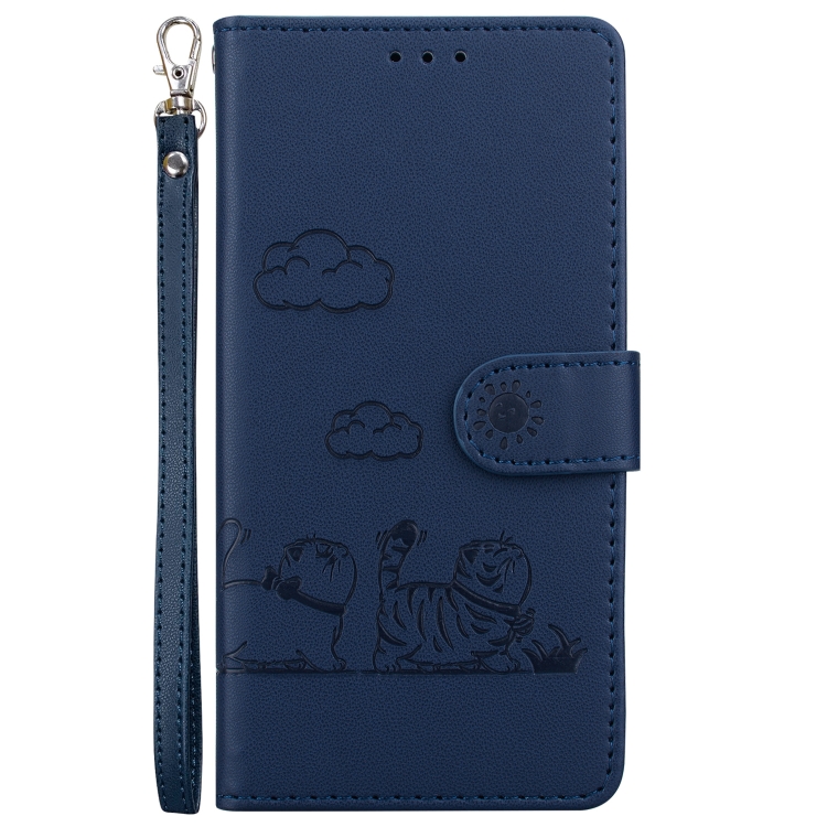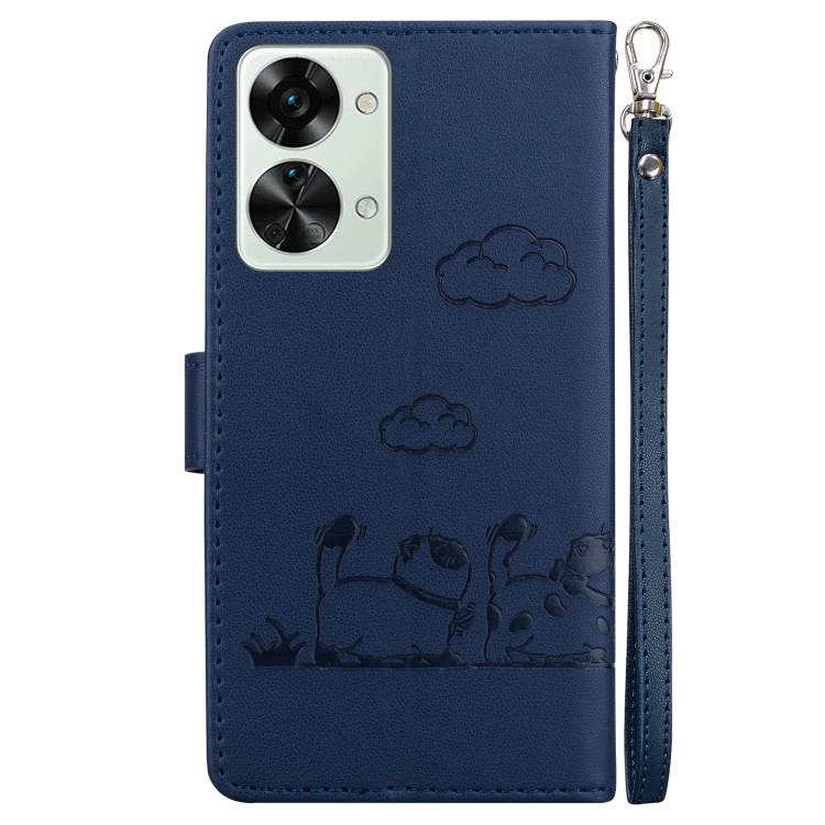 Funda de Cuero Rfid para OnePlus Nord 2T con Diseño de Gatos (Azul)