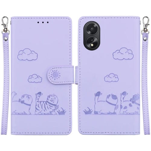 Funda de Piel Rfid con Diseño de Gatos para Oppo A38 4G/A18 (Morada)