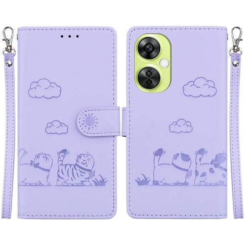 Funda de Cuero Rfid con Diseño de Gatos para Oppo K11X (Morada)