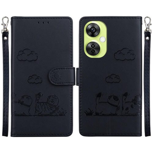 Funda de Cuero Rfid con Diseño de Gatos para Oppo K11X (Negra)