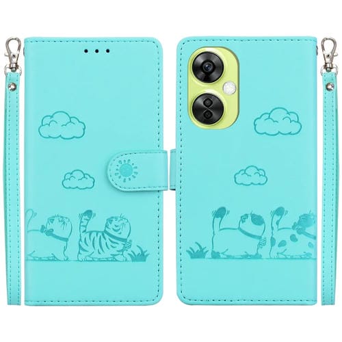 Funda de Cuero Rfid con Diseño de Gatos para Oppo K11X (Verde)