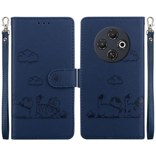 Funda de Cuero Rfid para Tecno Spark 30C con Diseño de Gatos (Azul)