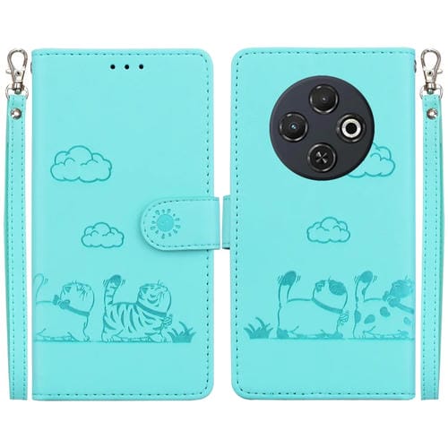 Funda de Cuero Rfid para Tecno Spark 30C con Diseño de Gatos (Verde)