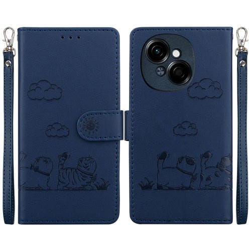 Funda de Cuero Rfid para Tecno Spark Go 1/Pop 9 con Diseño de Gatos (Azul)