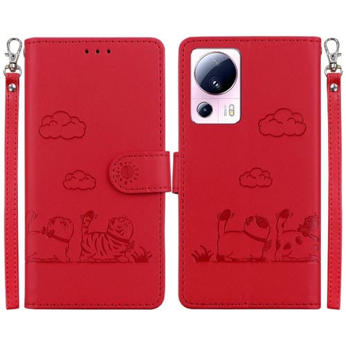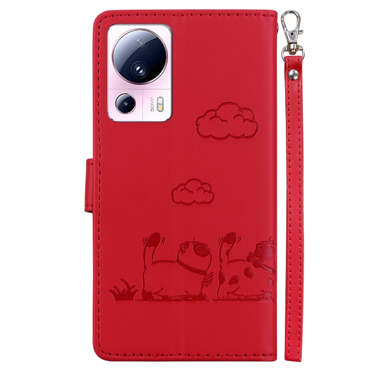 Funda de Cuero Rfid con Diseño de Gatos para Xiaomi 13 Lite/Civi 2 (Roja)