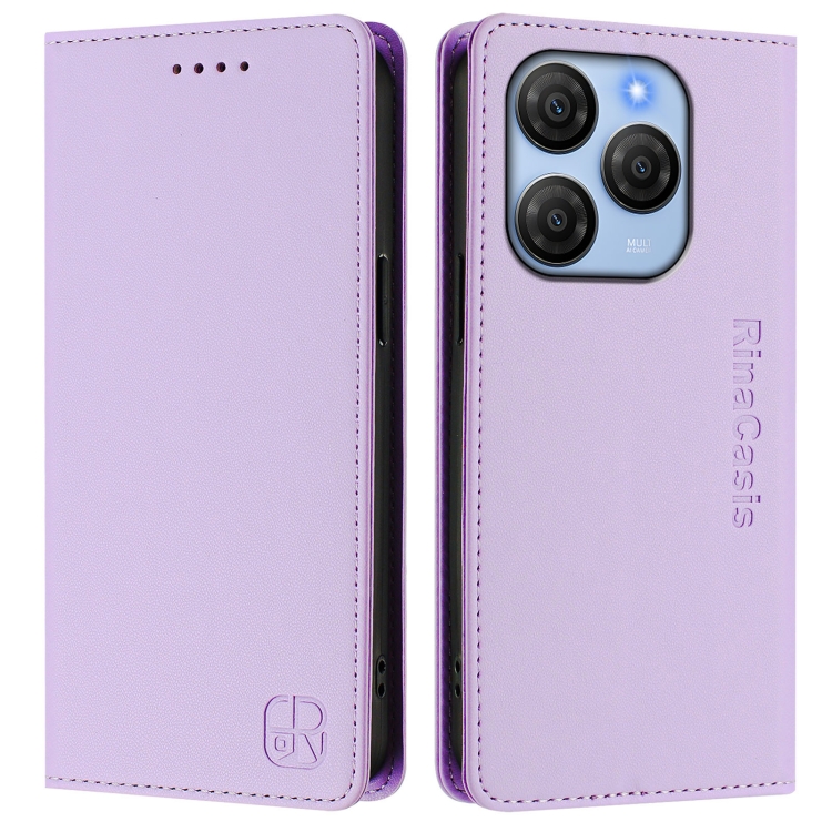 Funda de Cuero Rfid con Doble Pliegue y Succión Magnética para BlackView Shark 9 Rc01 (Morado Claro)