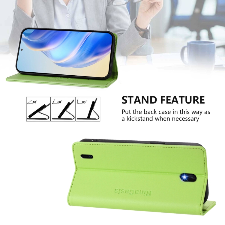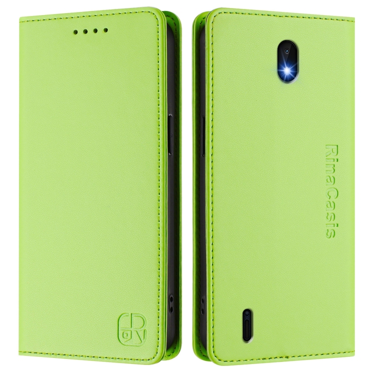 Funda de Cuero Rfid para Nokia C01 Plus / C1 2Nd Edition Rc01 con Doble Pliegue y Succión Magnética (Verde Hierba)