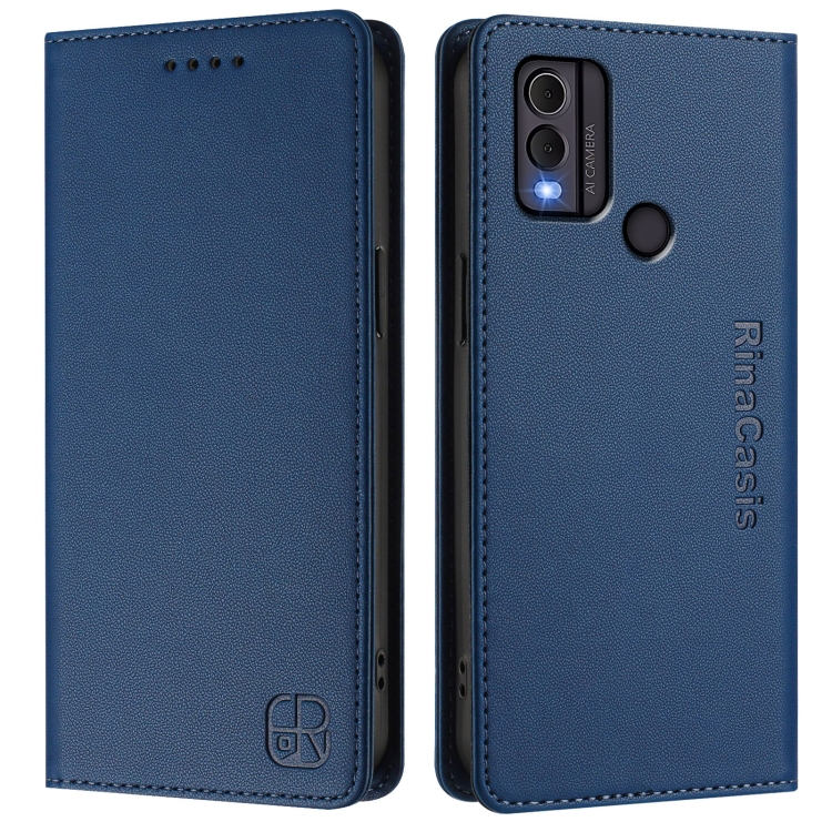 Funda de Cuero Rfid con Doble Pliegue y Succión Magnética para Nokia C22 Rc01 (Azul Oscuro)