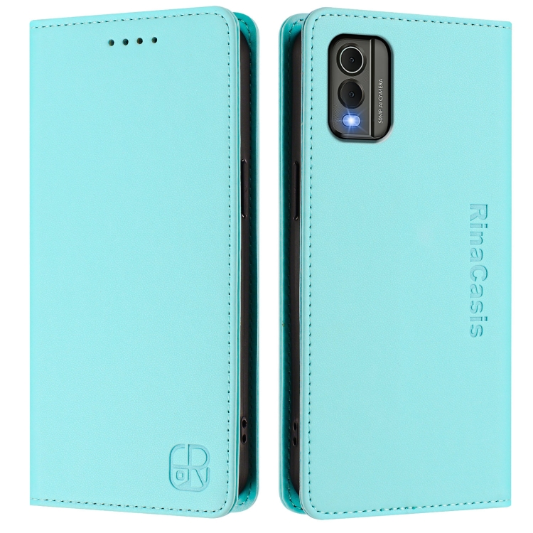 Funda de Cuero Rfid con Doble Pliegue y Succión Magnética para Nokia C32 Rc01 (Verde Menta)