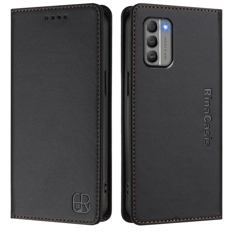 Funda de Cuero Rfid para Nokia G400 Rc01 con Doble Pliegue y Succión Magnética (Negra)