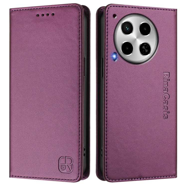 Funda de Cuero RFID con Doble Pliegue y Succión Magnética para Tecno Camon 30 4G/5G Rc01 (Violeta)