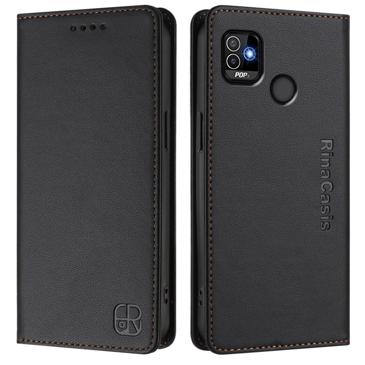 Funda de Cuero para Tecno Pop 5 Rc01 con Doble Pliegue y Succión Magnética Rfid (Negra)