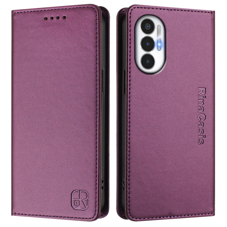 Funda de Cuero Rfid para Tecno Pova 3 Rc01 con Doble Pliegue y Succión Magnética (Violeta)