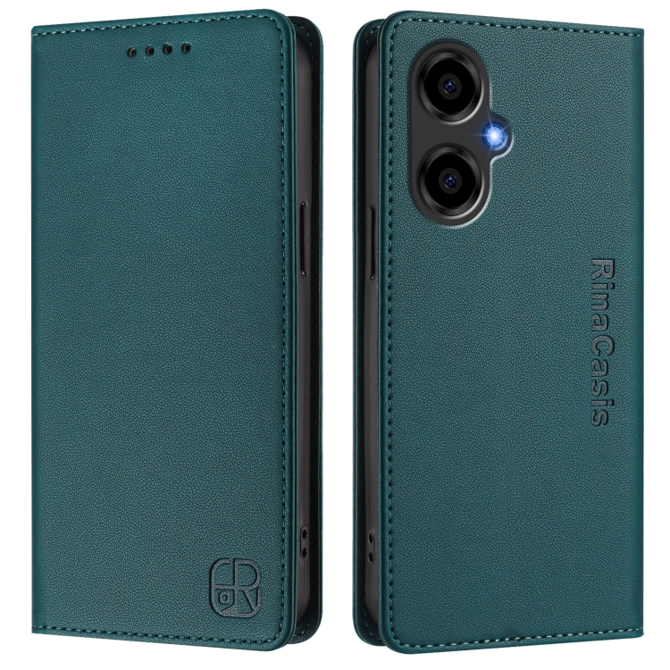 Funda De Cuero Rfid Blu G64 Rc01 Doble Pliegue Succión Magnética (Verde Oscuro)
