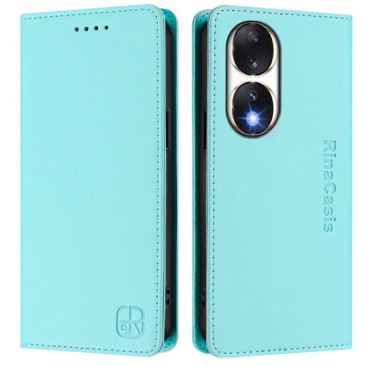 Funda de Cuero Rfid para Honor 90 Rc01 con Doble Pliegue y Succión Magnética (Verde Menta)