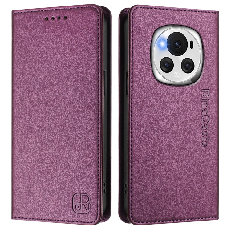 Funda de Cuero Rfid para Honor Magic6 Global Rc01 con Doble Pliegue y Succión Magnética (Violeta)
