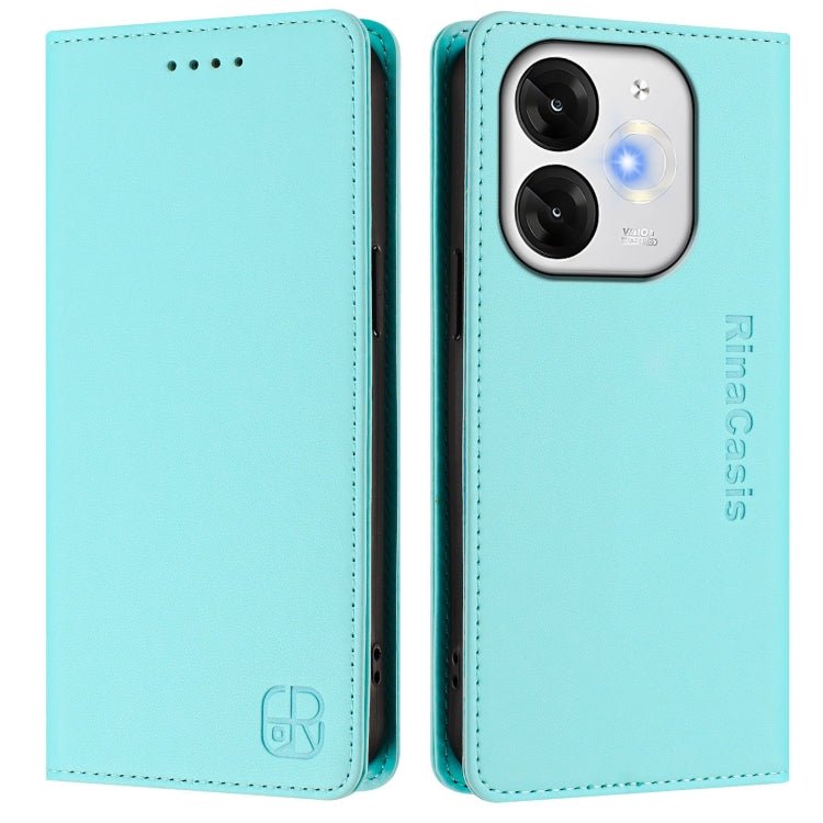 Funda de Cuero Rfid para Teléfono Itel A80 4G Rc01 con Doble Pliegue y Succión Magnética (Verde Menta)