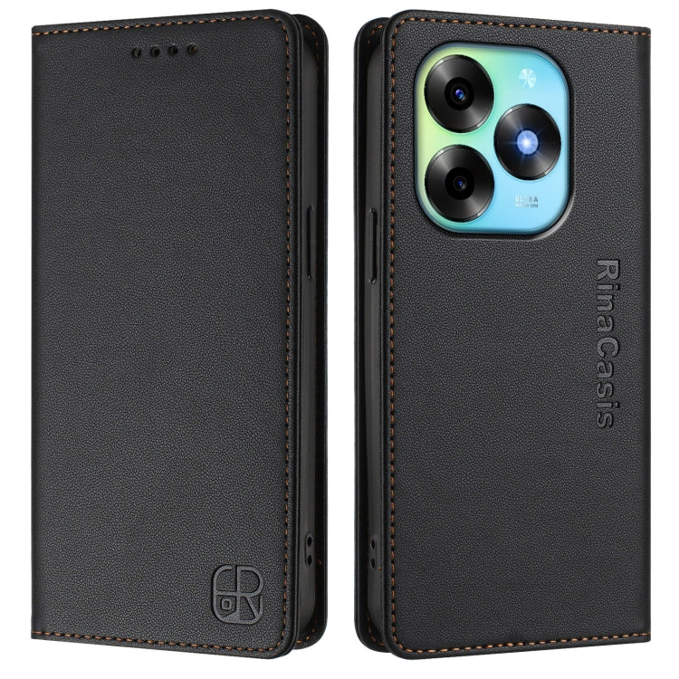 Funda de Cuero Rfid para Teléfono Itel S23+ Rc01 con Doble Pliegue y Succión Magnética (Negra)