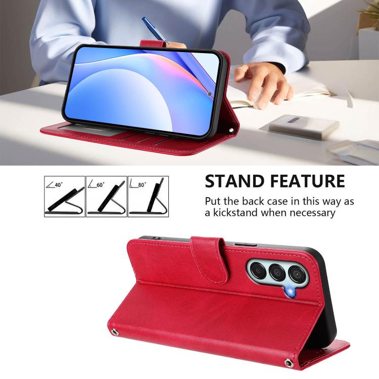 1. Cuero PU: La funda está hecha a mano con cuero PU de primera calidad y una carcasa interior de TPU suave, lo que le brinda un tacto cómodo y protege su teléfono en todos los aspectos.