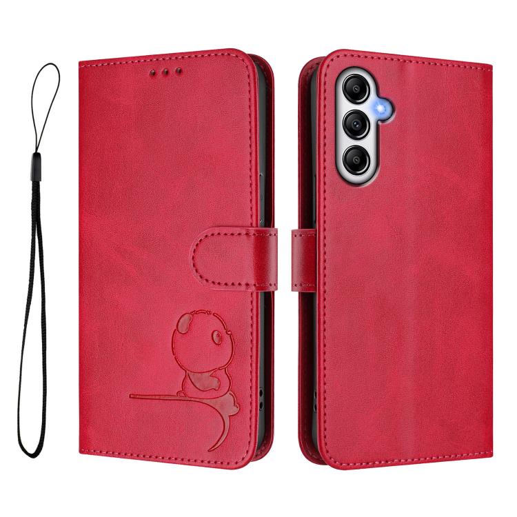 Funda de cuero RFID con estampado de panda y cordón para Samsung Galaxy A25 5G (rosa)