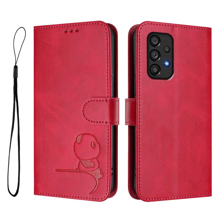 Funda de cuero RFID con estampado de panda y cordón para Samsung Galaxy A53 5G (rosa)