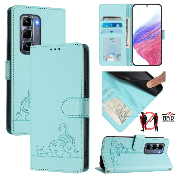 Funda de Cuero Rfid con Estampado de Rata y Gato para Infinix Hot 50 Pro+ 4G con Cordón (Verde Menta)