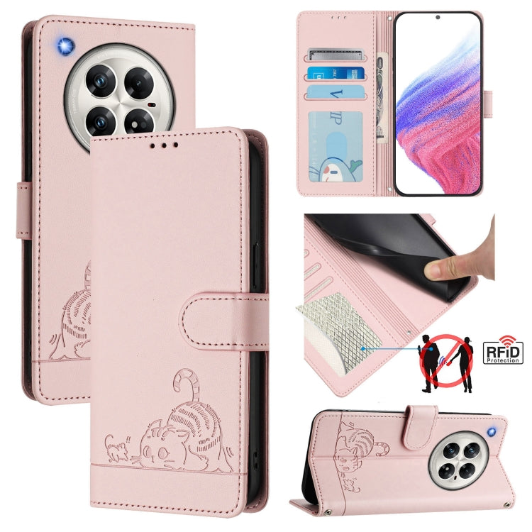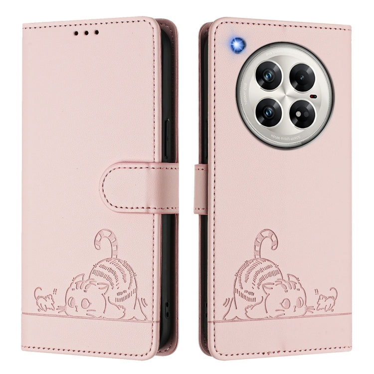 Funda de Cuero Rfid para Infinix Zero 40 4G/5G con Estampado de Rata y Gato en Relieve y Cordón (Rosa)