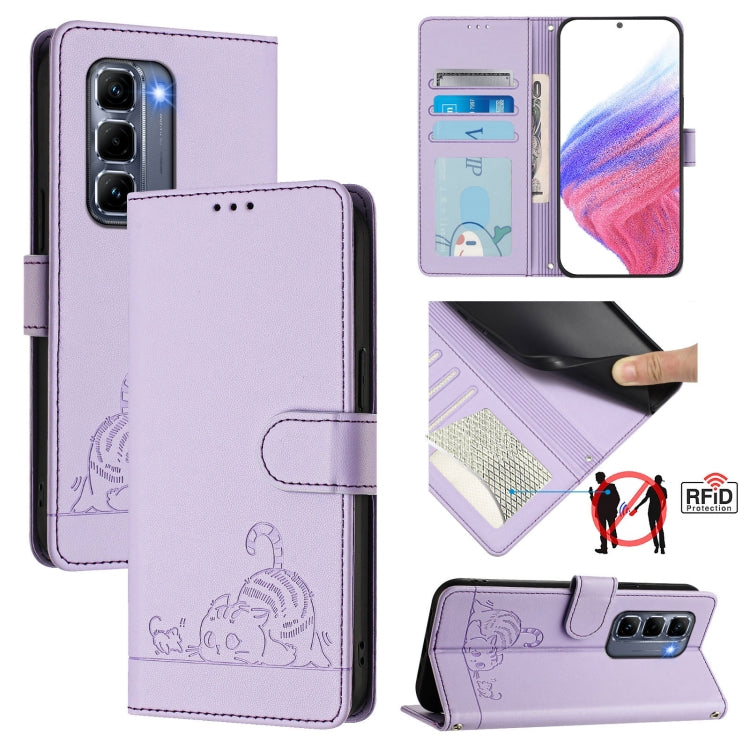 Funda de Cuero Rfid para Infinix Hot 50 Pro+ 4G con Estampado de Rata y Gato y Cordón (Morado)