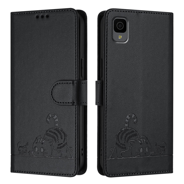 Funda de Cuero Rfid para TCL 30Z T602Dl con Cordón y Patrón de Gato y Rata (Negro)