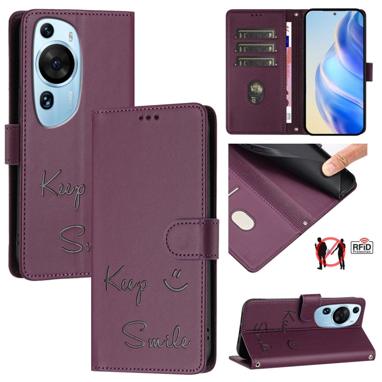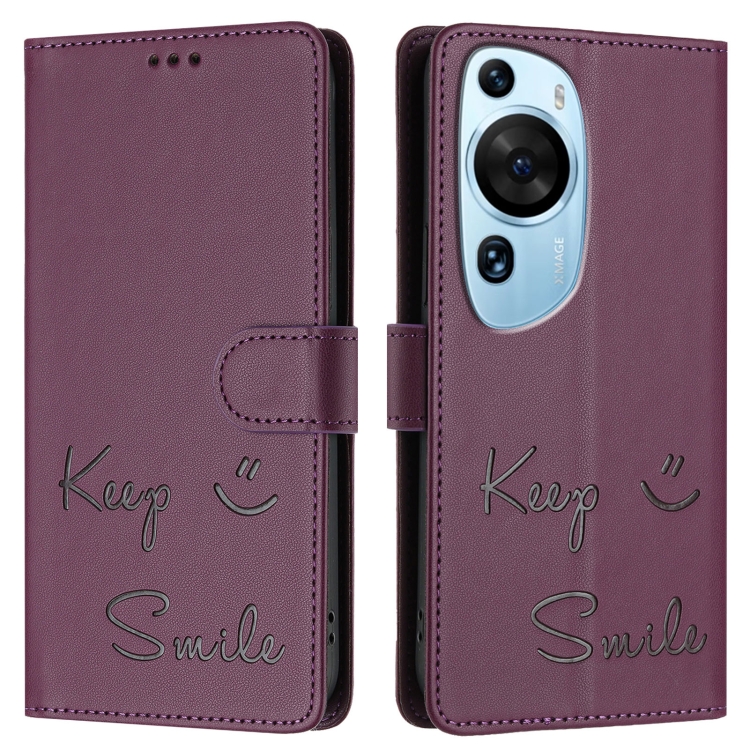 Funda de Cuero Rfid con Relieve Art Smile para Huawei P60 (Violeta)