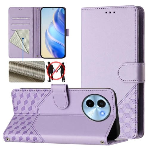 Funda de Cuero Rfid con Relieve de Panal Global para Vivo Y38 5G / Y200I / T3X (Morado Claro)