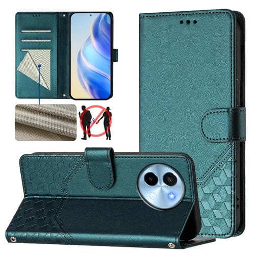 Funda de Cuero Rfid con Relieve de Panal Global para Vivo Y38 5G / Y200I / T3X (Verde Pavo Real)