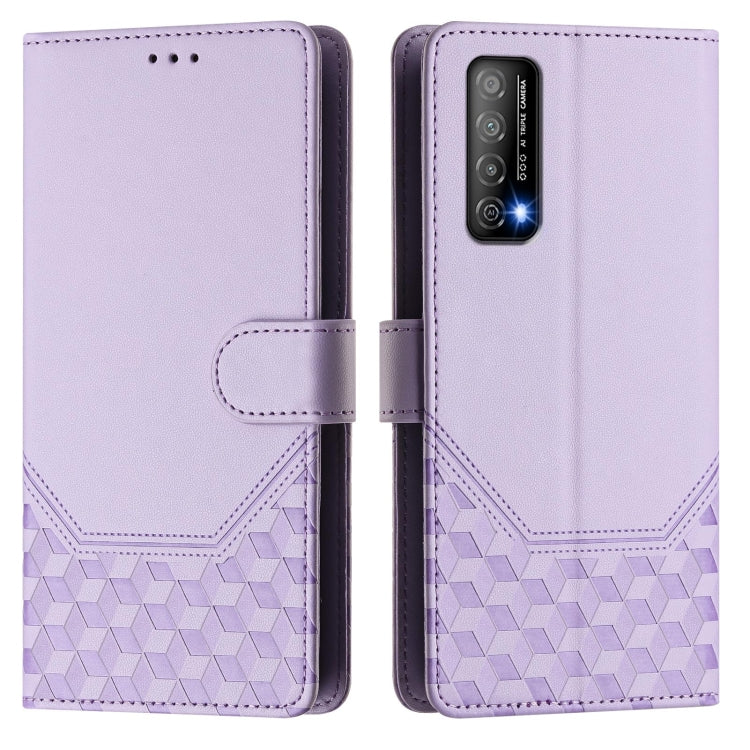 Funda de Cuero Rfid con Relieve de Panal para Huawei Enjoy 20 Se/P Smart (2021) (Morado Claro)
