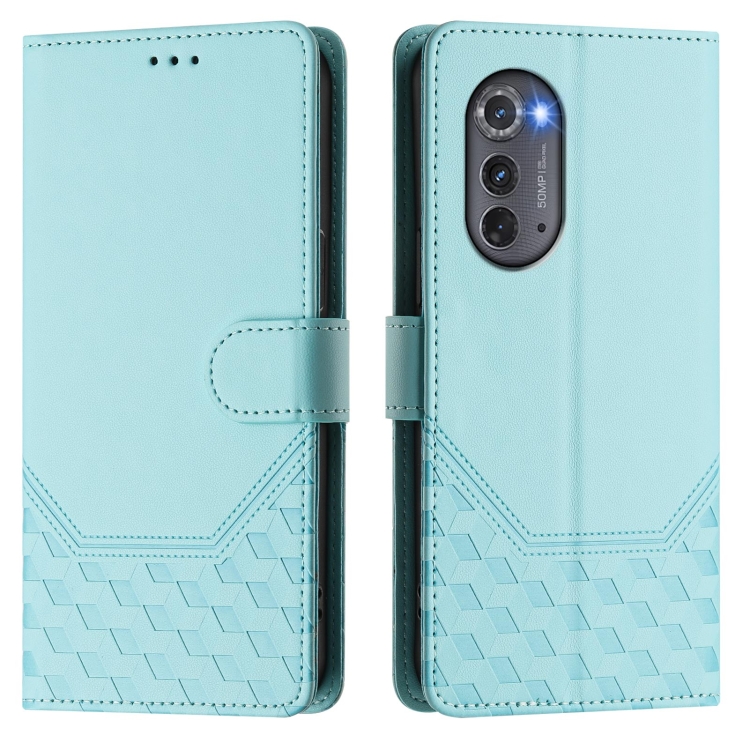 Funda de Cuero Rfid con Relieve de Panal para Motorola Edge 2022 y Edge 5G Uw 2022 (Verde Menta)