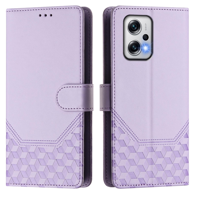 Funda de Cuero Rfid con Relieve de Panal para Redmi K50I/Note 11T Pro+ 5G (Morado Claro)