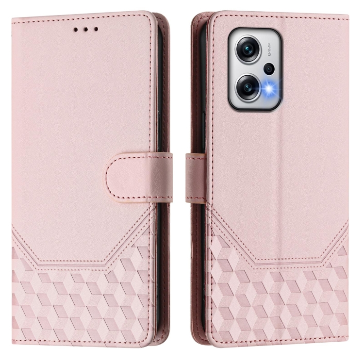 Funda de Cuero Rfid con Relieve de Panal para Redmi K50I/Note 11T Pro+ 5G (Rosa)