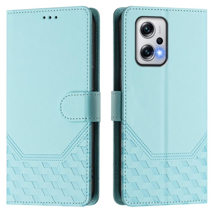 Funda de Cuero Rfid con Relieve de Panal para Redmi K50I/Note 11T Pro+ 5G (Verde Menta)