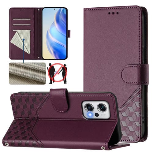 Funda de Cuero Rfid con Relieve de Panal para Redmi K50I/Note 11T Pro+ 5G (Violeta)