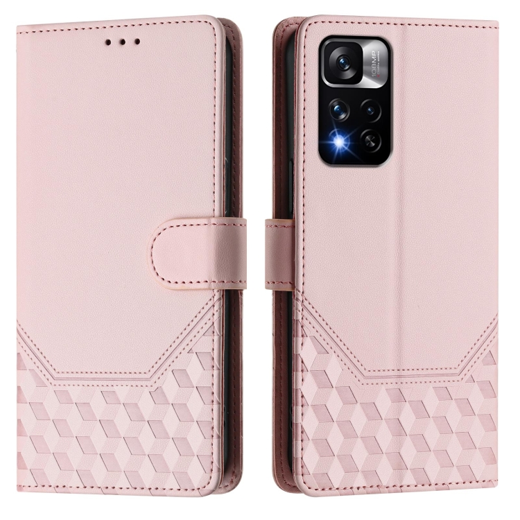 Funda de Cuero Rfid con Relieve de Panal para Redmi Note 11 Pro+ 5G Europa (Rosa)