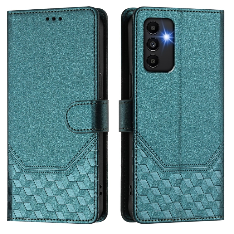 Funda Cuero Rfid Samsung Galaxy A13 5G 4G A04S A04 Relieve Panal (Verde Pavo Real)