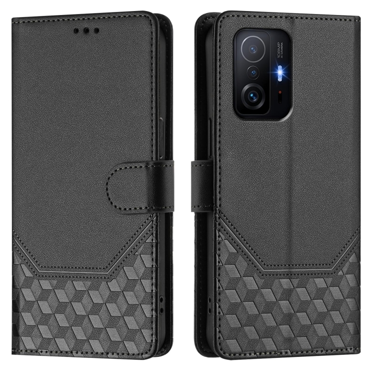 Funda de Cuero Rfid con Relieve de Panal para Xiaomi 11T/11T Pro (Negra)