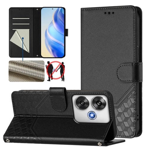 Funda de Cuero Rfid con Relieve de Panal para Xiaomi Poco F6 5G (Negra)
