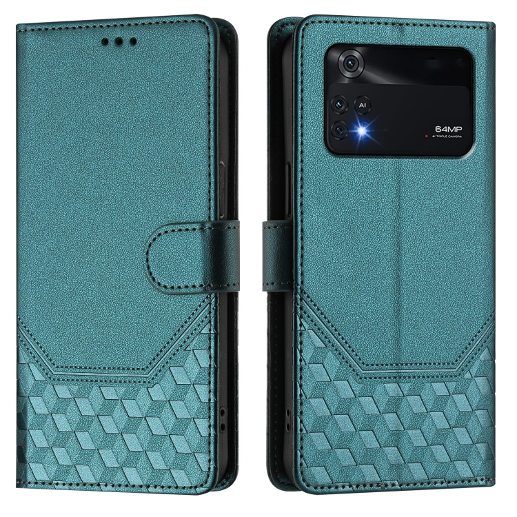 Funda de Cuero Rfid con Relieve de Panal para Xiaomi Poco M4 Pro 4G (Verde Pavo Real)