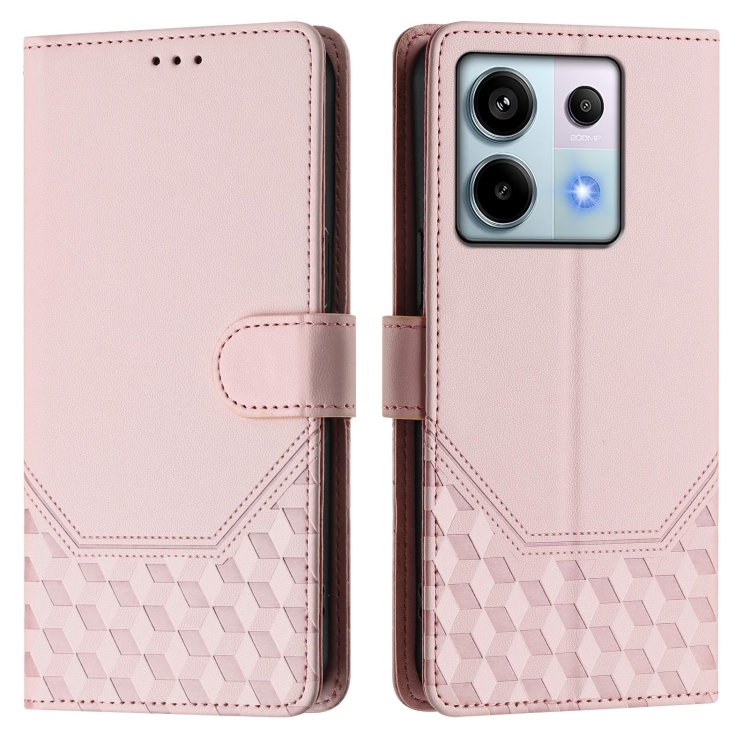Funda de Cuero Rfid con Relieve de Panal para Xiaomi Poco X6 5G (Rosa)
