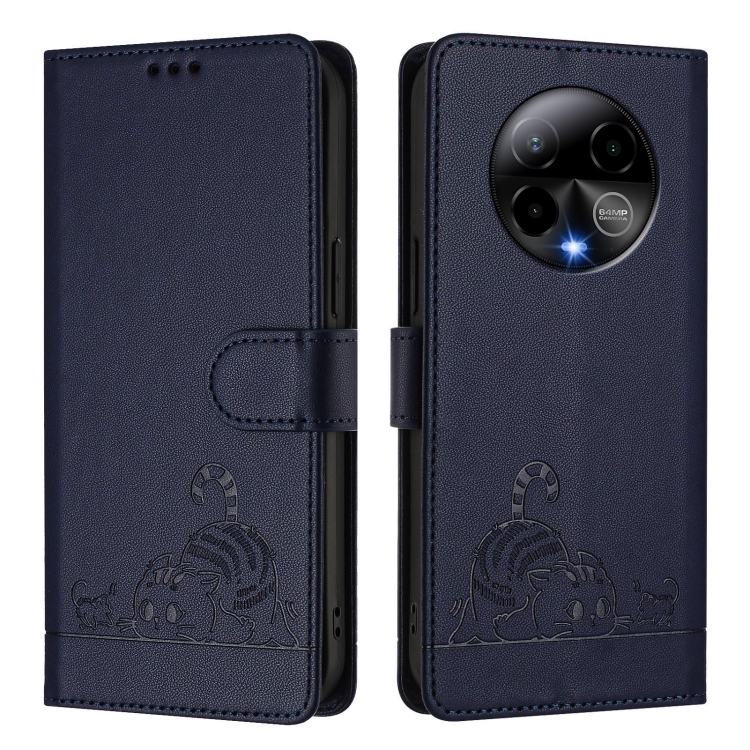 Funda de Cuero RFID con Relieve de Rata y Gato para Blu Bold K50 con Cordón (Azul)